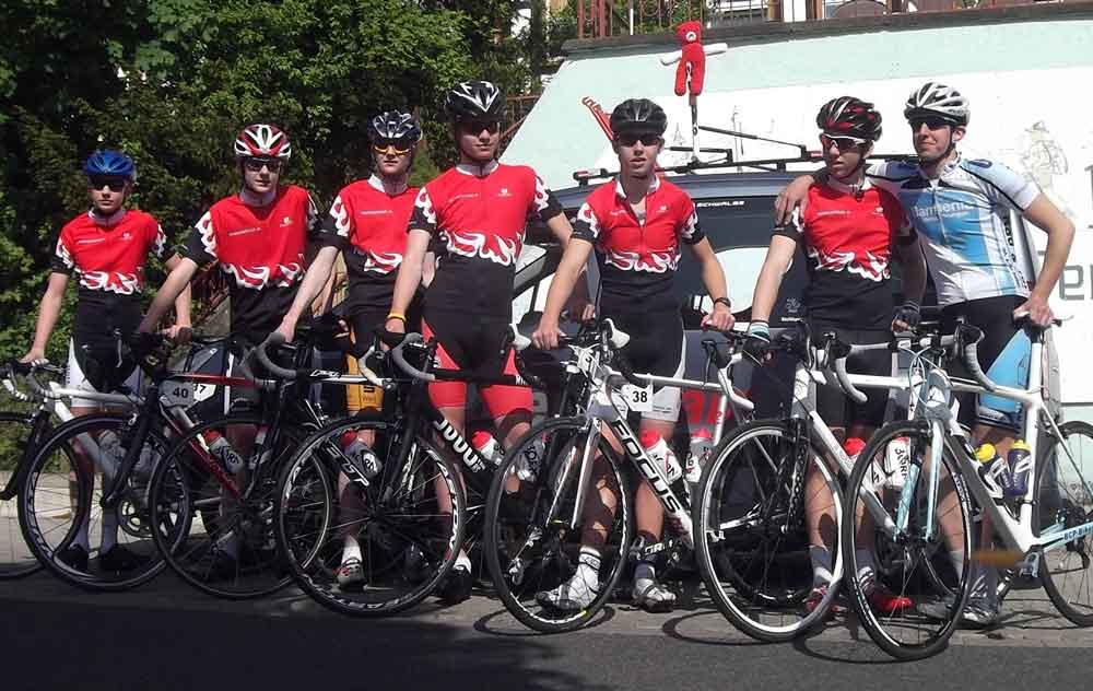 ![]() Am vergangenen Wochenende reisten die vierzehn- und fünfzehnjährigen Jungs Jakob Winkler und Heiko Homrighausen (beide Zugvogel Aachen) mit dem Team „Radrennteam NRW 1“, das vom Aachener Förderverein Radrennteam e.V. gestellt wurde und aus sechs Fahrern aus verschiedenen Vereinen bestand, zu der international besetzten TMP – Tour, genannt auch „Kleine Friedensfahrt“, im thüringischen Gotha an. Hier starteten Jakob und Heiko in einem Feld von insgesamt 162 Fahrern die aus der Türkei, Polen, den Niederlanden, Italien und den besten der deutschen Landesverbände stammten. An drei Tagen, wurden bei der schwersten Jugendtour Deutschlands vier Rennen absolviert. Der Freitag begann mit einem Prolog, in der es alle 5 Minuten eine Wertungsrunde gab. Heiko bewies Größe mit Platz 8 in seiner Gruppe. Der Samstag begann mit einem Bergzeitfahren, wo auf 5 km schon etliche Höhenmeter überwunden werden mussten, bevor es am Nachmittag dann zur 2. Etappe über 60,8 km ging. In dem Rundstreckenrennen wurde mit einer Durchschnittsgeschwindigkeit von 39,59 km/h ordentlich Tempo gemacht. Am Sonntag bestritten die Jungs, die im jüngeren Jahrgang fuhren die dritte und letzte Etappe. Das Straßenrennen „Rund um Waltershausen“, erstreckte sich über eine Distanz von 63 Km und es wurde eine Durchschnittsgeschwindigkeit von 43,42 km/h erreicht. In der Gesamtwertung kam Heiko auf Platz 79. Jakob wurde 96er. Diese Leistung haben die beiden er auch dem Team „Radrennteam“ zu verdanken. Die anderen Fahrer waren: Janek Heming (RC Bocholt 1977), Marius Kühne, (RSV Unna), Sven Schulte (Victoria Neheim) und Lennart Bechheim (RSV Werl-Wickede) Im Girls-Team fuhren: Jaimy-Ann Sterenborg (RC Victoria Neheim), Josefine Graffe (RC Bocholt 1977), Jenny Heeger (RV Witten 1946), Lorella-Melina D'Ecclesiies (RSV Gütersloh 1931)